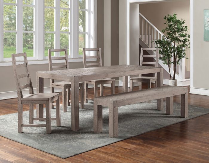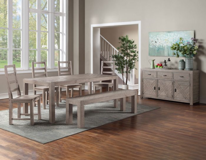 Reclaimed lumber is crafted into a collection built for today’s homes with Auckland. Years of natural weathering and solid wood give Auckland the natural character you will appreciate. The weathered grey finish offers a neutral palette for the clean lines and rustic appearance and the Bench serves as a great addition to the table with the ability to seat three adults or multiple children.