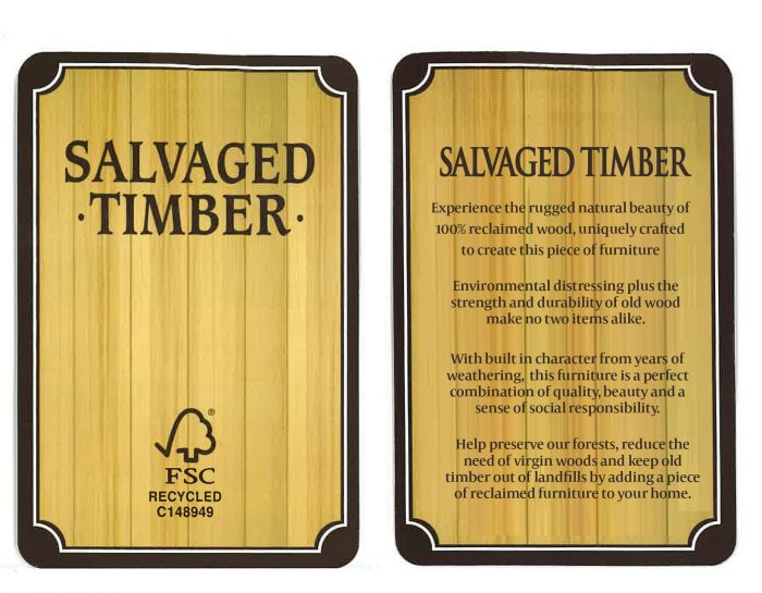 - The use of the salvaged timber and FSC certification helps to preserve forests and reduce the use of virgin woods, a point not lost on many of today’s socially conscious consumers.