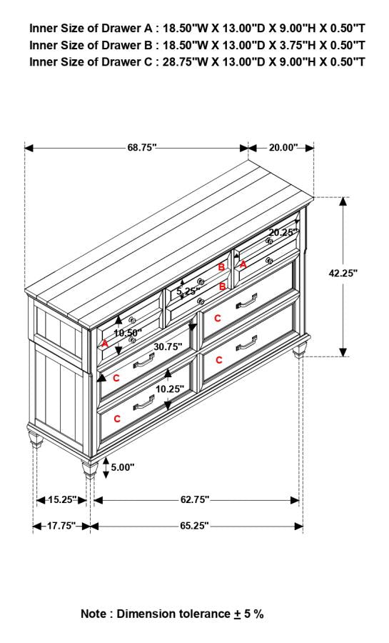 - Top drawers are black felt lined, while remaining drawers are cedar lined