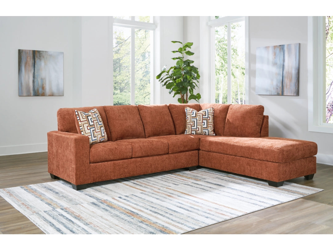 Looking to make a bold statement with color? Liven up your living room with the Aviemore sectional with chaise. Its trend-right burnt orange upholstery adds a playful pop of color to your decor. Bold and eclectic accent pillows complete the look. Pairing posh style with everyday comfort, this sectional is a welcome addition to contemporary spaces.
