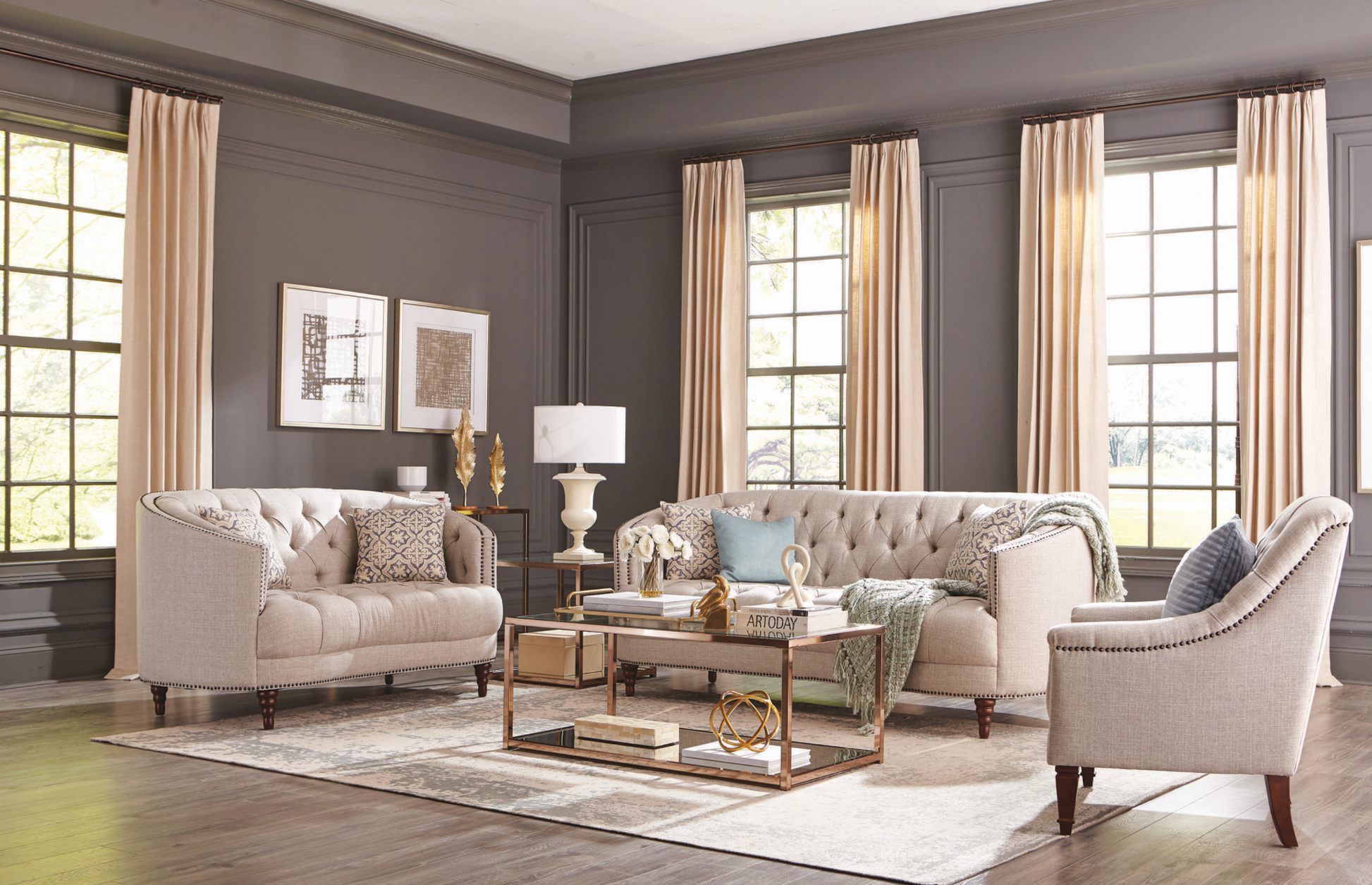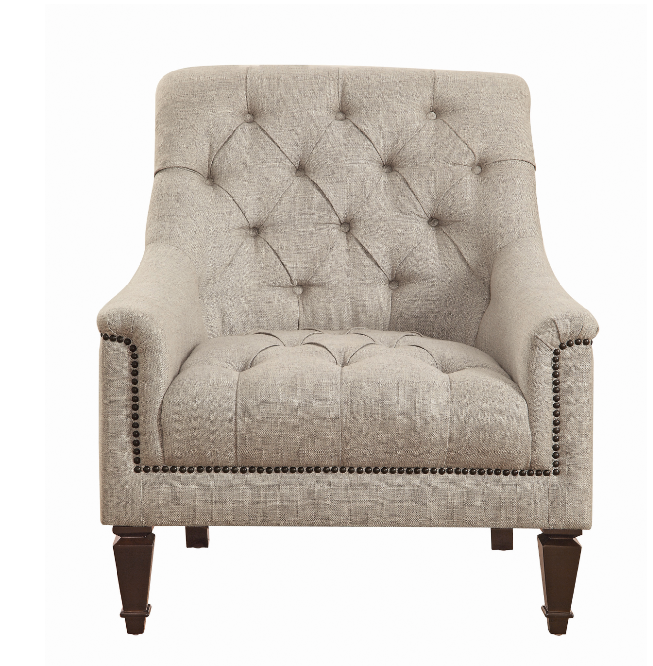 All eyes are on the romantic silhouette of this accent chair. Bolster the tasteful appeal of a transitional room with a beautiful chair with elegant contoured arms. Beige upholstery brings a neutral character that blends in most settings. Tufting on its seat and seat back join ornate leg designs. Complete a sophisticated, soft seating group with this fabulous chair.Set includes: One (1) chair