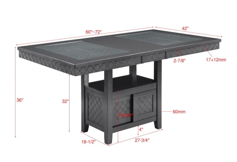 BANKSTON CTNR HT TBL TOP 1X12" | 42" X 60-72" X 36"H & ZINC/TOP 17+12MM/LEG 60MM |