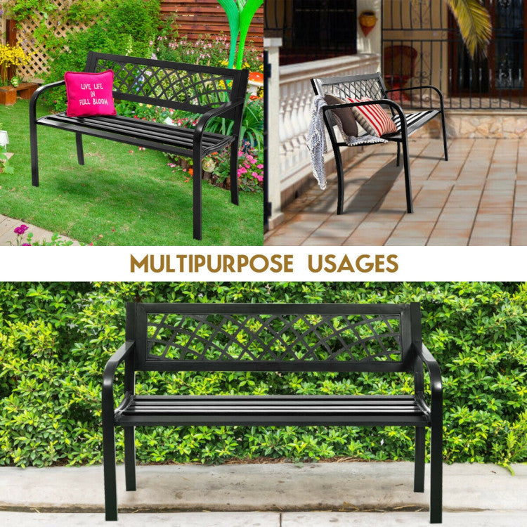 ● Easy to Keep Clean: With immerse painting and sleek surface, it is easy for you to clean the garden bench. Metal slats seat is perfectly suitable for outdoor use because gap between slats is good for draining on rainy day.