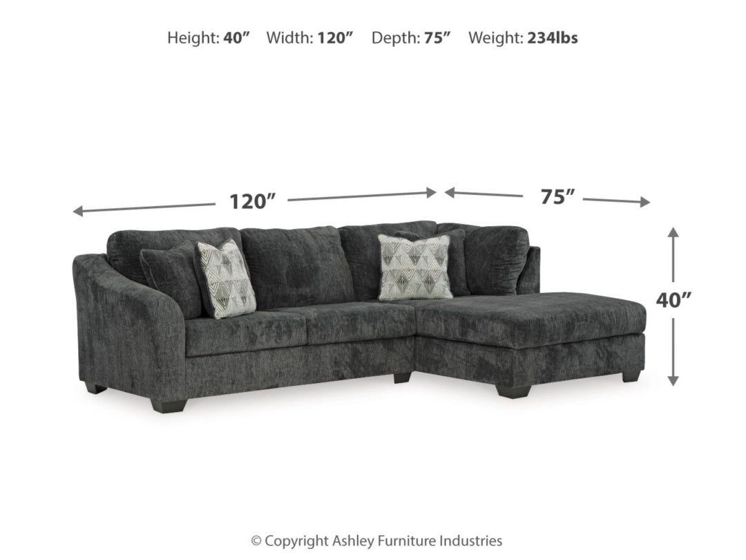 Includes 2 pieces: left-arm facing sofa and right-arm facing corner chaise