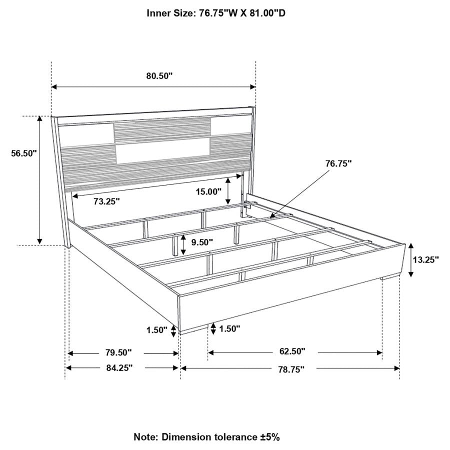 Gleaming chrome accents add alluring elegance to this beautiful, wooden bed frame. The straight, solid headboard makes it a perfect match for a variety of décor styles. Durable, Asian hardwood construction ensures plenty of support to promote restful sleep. Chambered trim adds beautiful dimension to its chic, stylish design.
