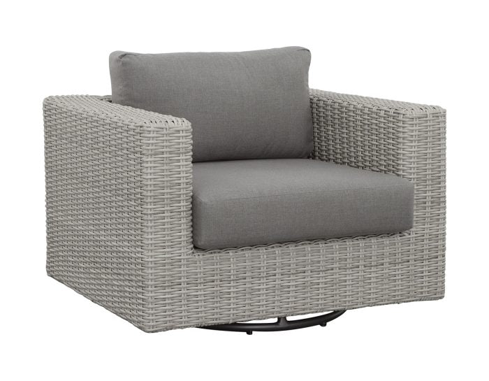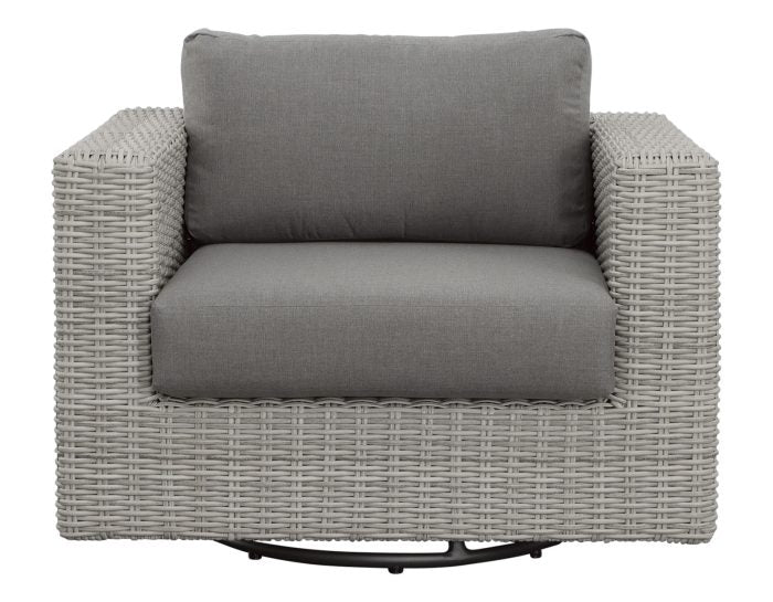 Sink into the ultra-deep cushions of the Blakley Outdoor Set and feel the stress of the day melting away. A generously proportioned 93.5” Sofa combines with a Lounge and 360° Swivel Chair to give you perfect views of your new outdoor oasis.