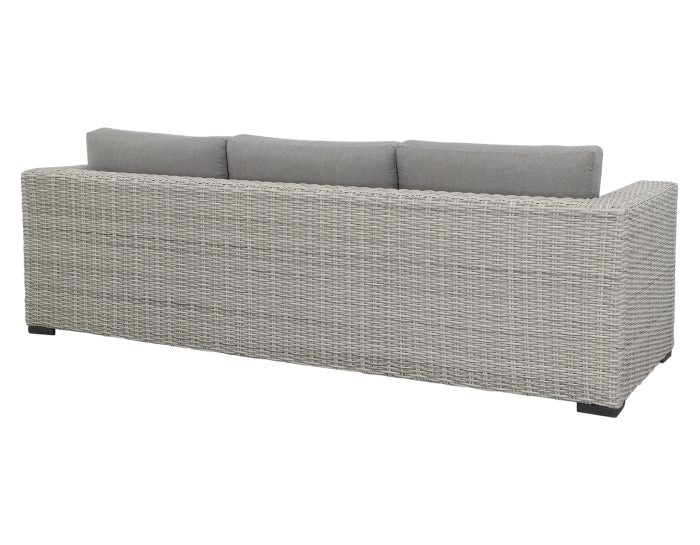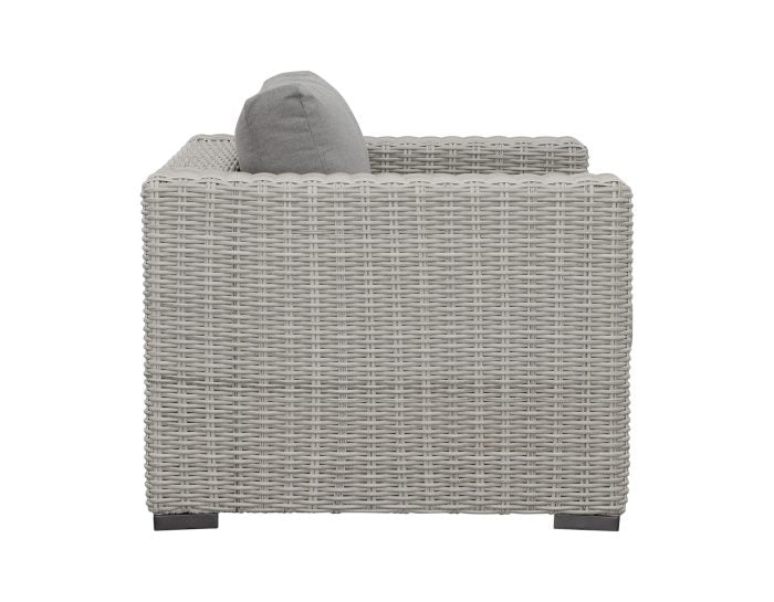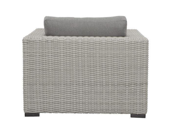 Durably built with HDPE resin half round wicker and solution-dyed acrylic covers, Blakley looks comfortable in indoor settings but is built for the great outdoors. A combination of gray tones creates an outdoor backdrop that is neutral but fresh and inviting. Beautifully crafted aluminum tables offer a perfect complement to the upholstery with a whitewashed birch look that also offers heat and weather resistance.