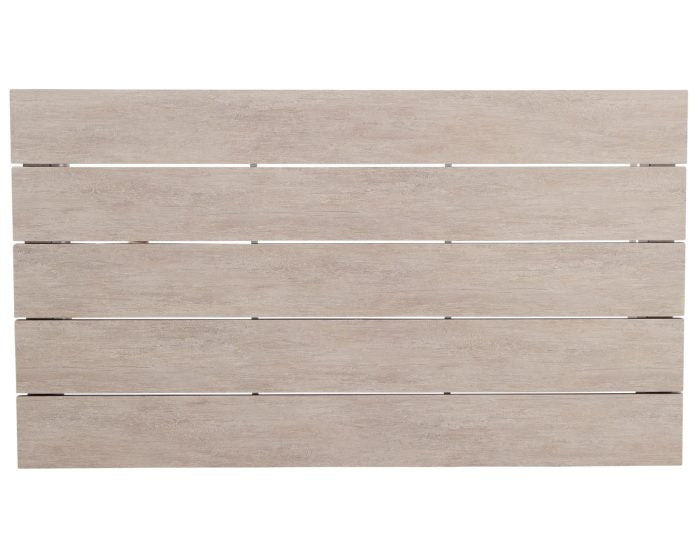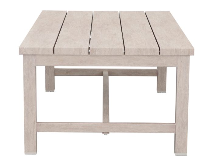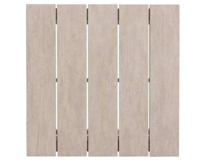 The aluminum tables are powder-coated in a natural looking white washed birch finish that replicates the appearance of natural wood but in aluminum that is lightweight and high strength with durable, heat and rust resistant properties.