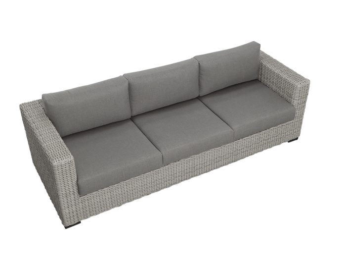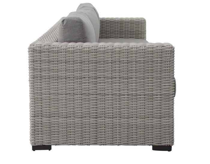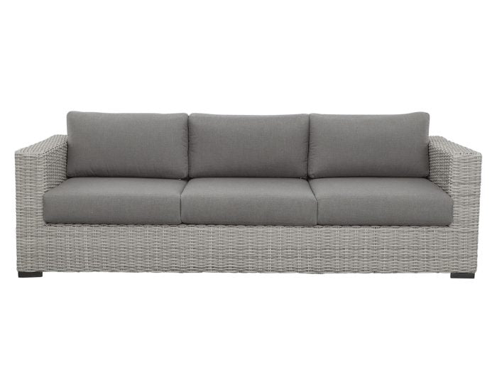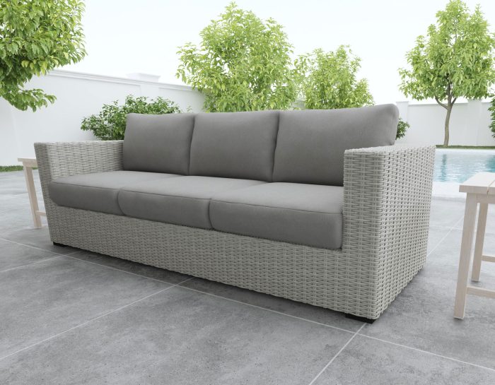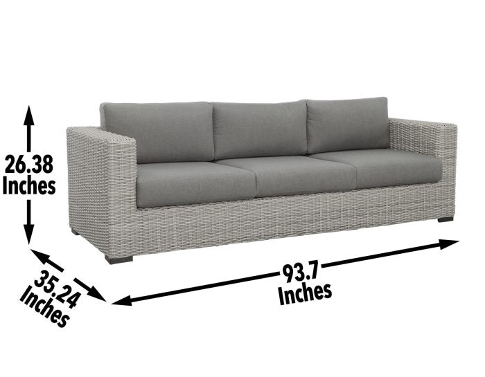 A light gray resin wicker combine with a dark gray cover to create a neutral outdoor look that is both fresh and inviting. With its generous 93.5-inch width, the Blakley Outdoor Sofa provides ample space for you and your loved one to relax in comfort. And when the weather turns, the removable cushions can be easily stored away from the elements.