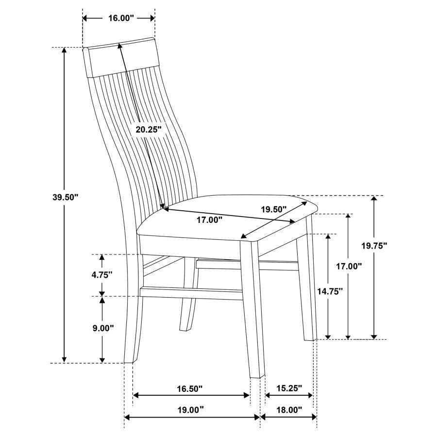 Imagine hosting family gatherings at the holidays and dining with friends around this charming, contemporary seven-piece dining set. Its modern look is established with a robust pedestal base complete with a decorative slat pattern. Its deep, rich mango oak wood grain finish is a lovely complement in casual and more formal spaces, and the table is equipped with an expansion leaf perfect for guests. Chairs are included, offering a padded seat with light brown upholstery, and a slatted back with a gentle curve for extra support and comfort. The set delivers a cohesive, artistic look and feel to center your dining space with both energy and soothing, welcoming ambiance.