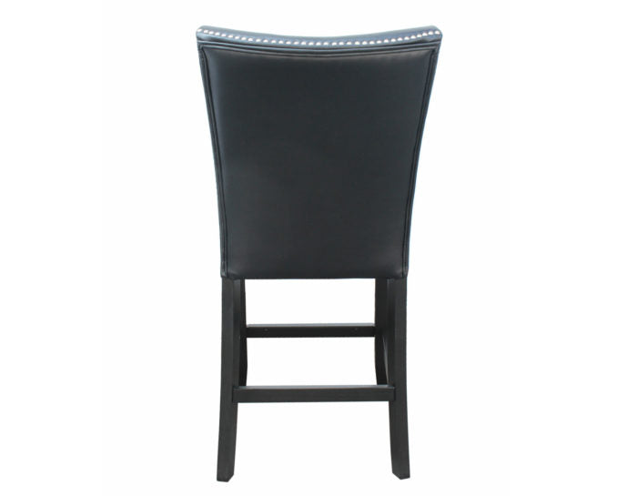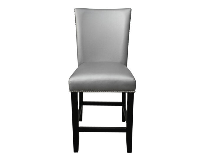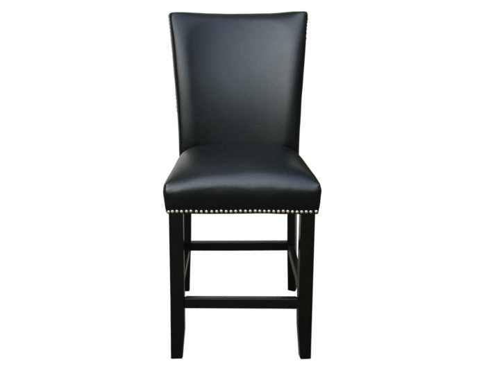 The simple shape is covered with faux-leather that’s accented by a single row of silver nailhead trim. Deep padding adds comfort to the squared seat and backrest. The interior frame is made from solid hardwood with an espresso finish across the legs, stretchers, and footrest. Choose from available color options.