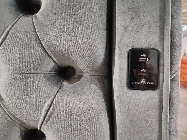 Deep tufting adds a textural look while the soft velvet upholstery shores up the bed's sophisticated design. Comes with Bluetooth and USB charging ports.