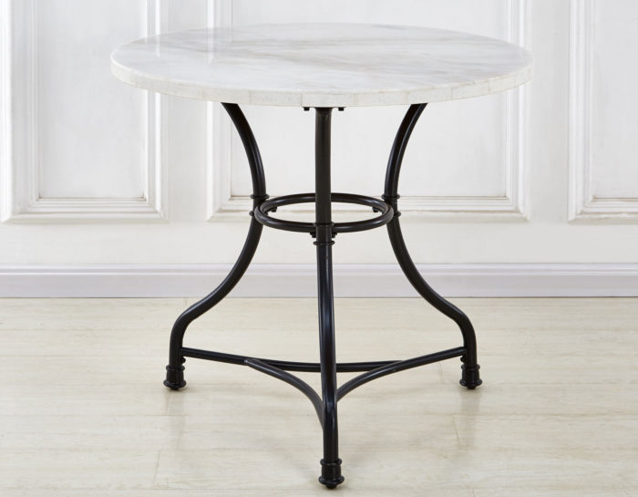 Bring home the romance of a French Bistro with the Claire collection of marble and metal tables and chairs from Steve Silver Company. Enjoy the ambiance of your favorite neighborhood cafe with the 34 inch round white marble top bistro table and metal bistro side chair. You will marvel at the beauty and functionality of this compact dining table and chairs.
