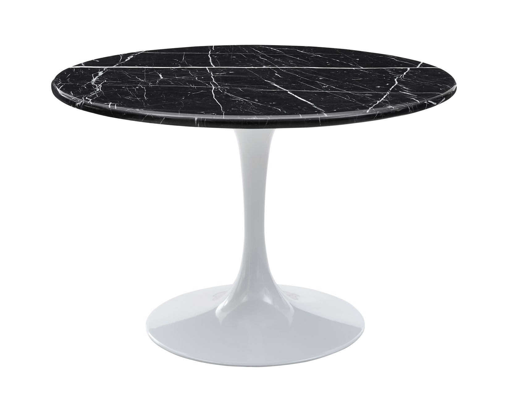 - Black marquina top features white mineral veins for a stunning complement to the white metal base