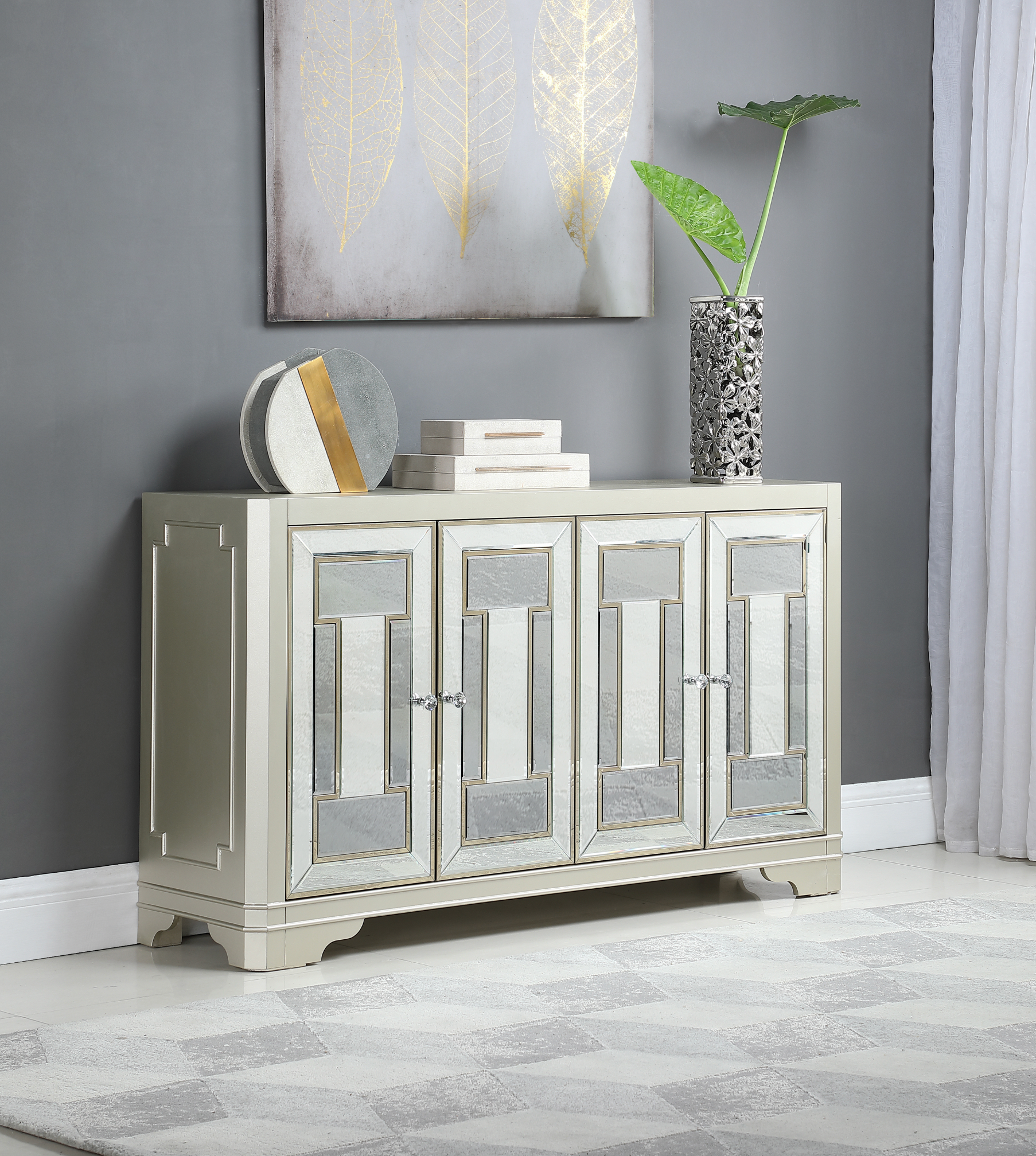 4-Door Accent Cabinet Smoke And Champagne
