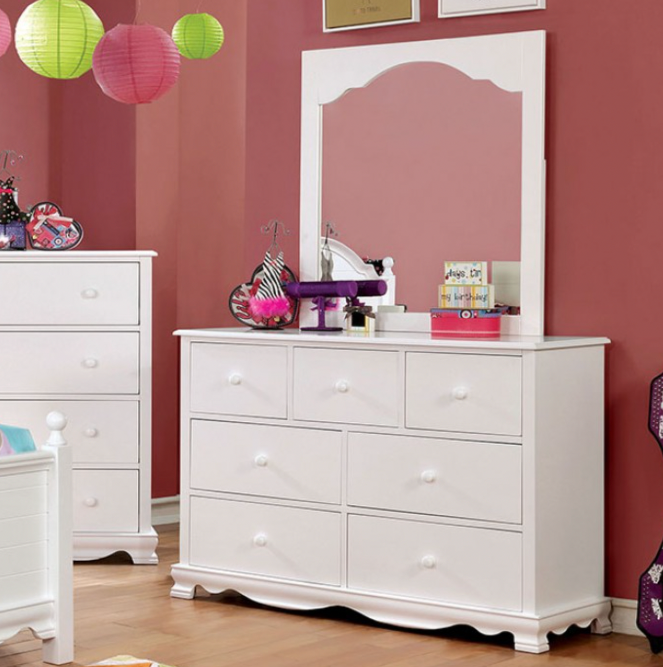 With its white color and contemporary elements, this dresser brings functionality and design together.