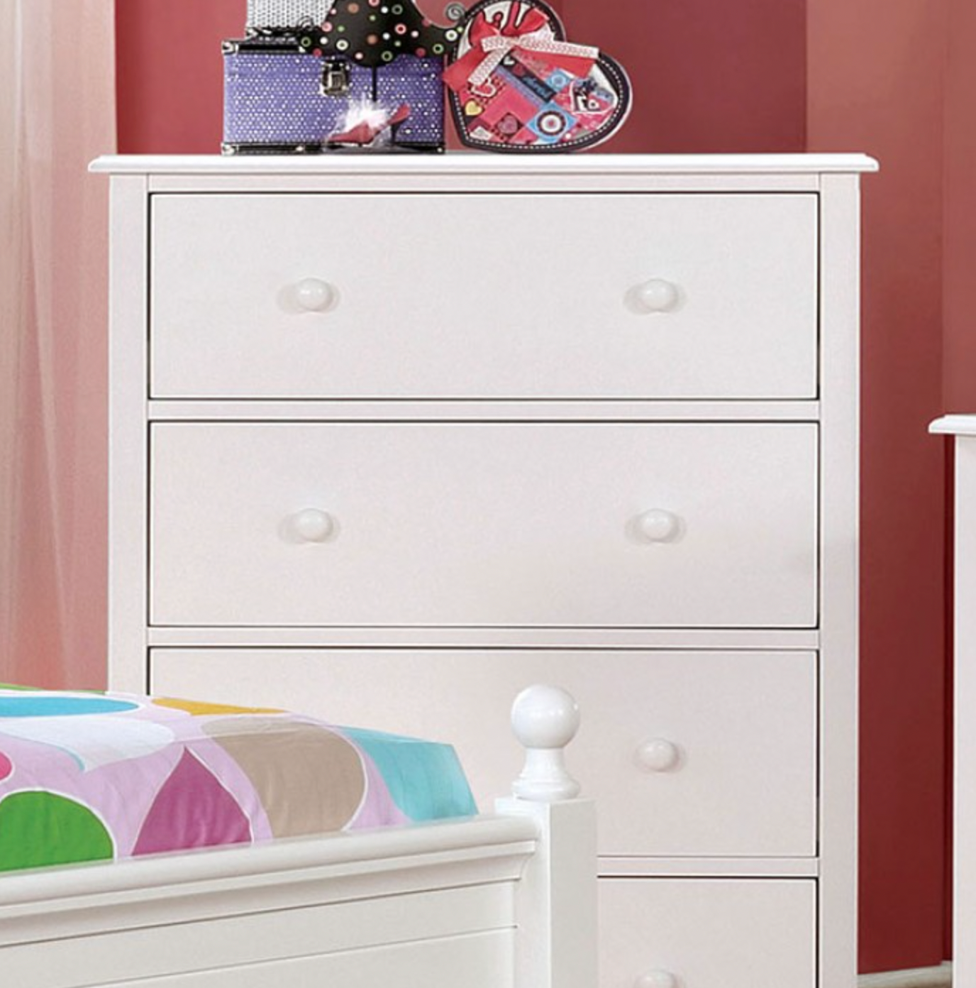 With its white color and contemporary elements, this chest brings functionality and design together.