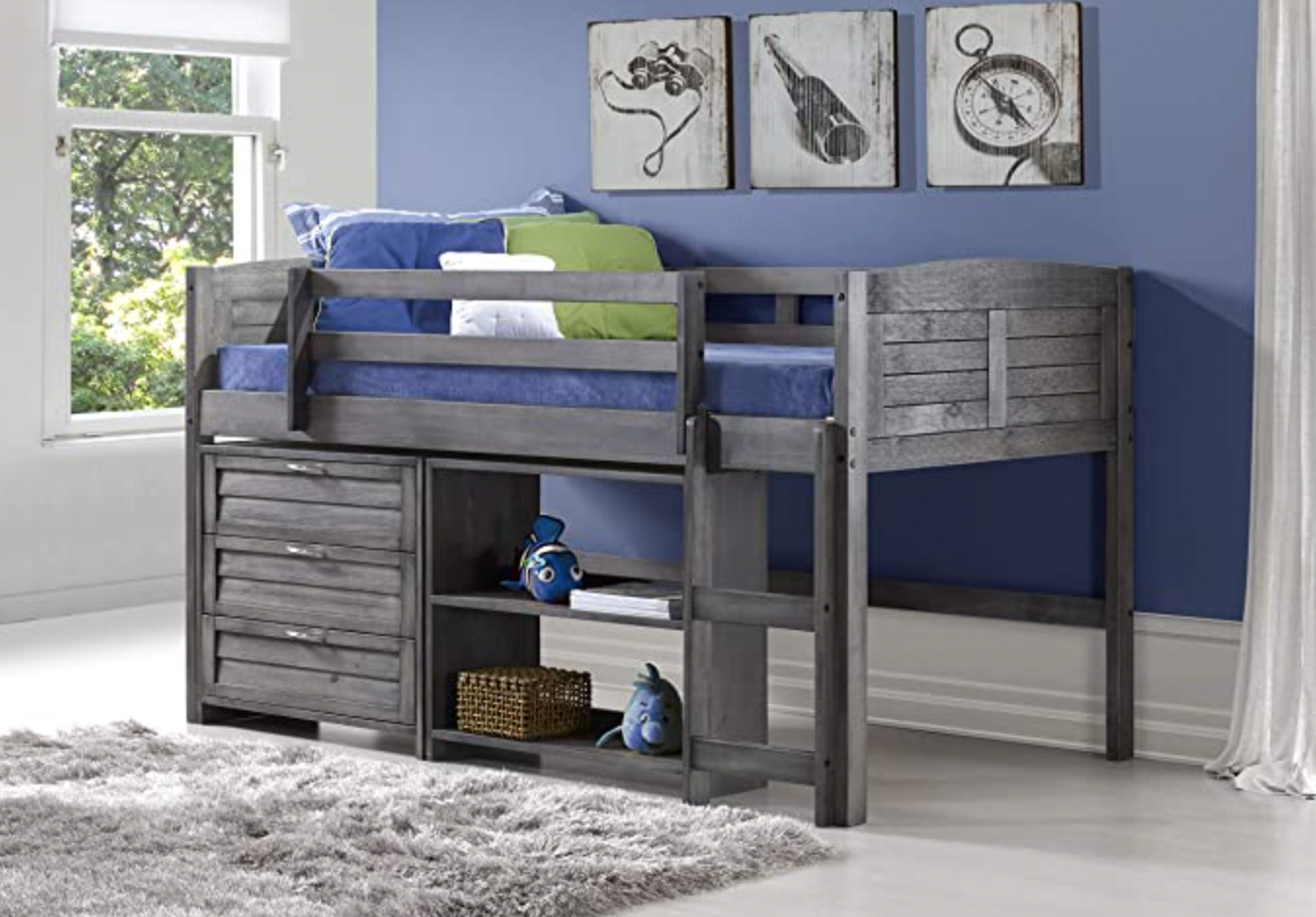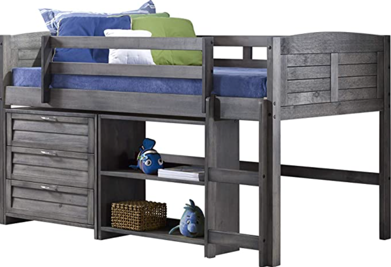 Kids Louver Modular Low Loft Bed Combo C, Twin, Antique Grey