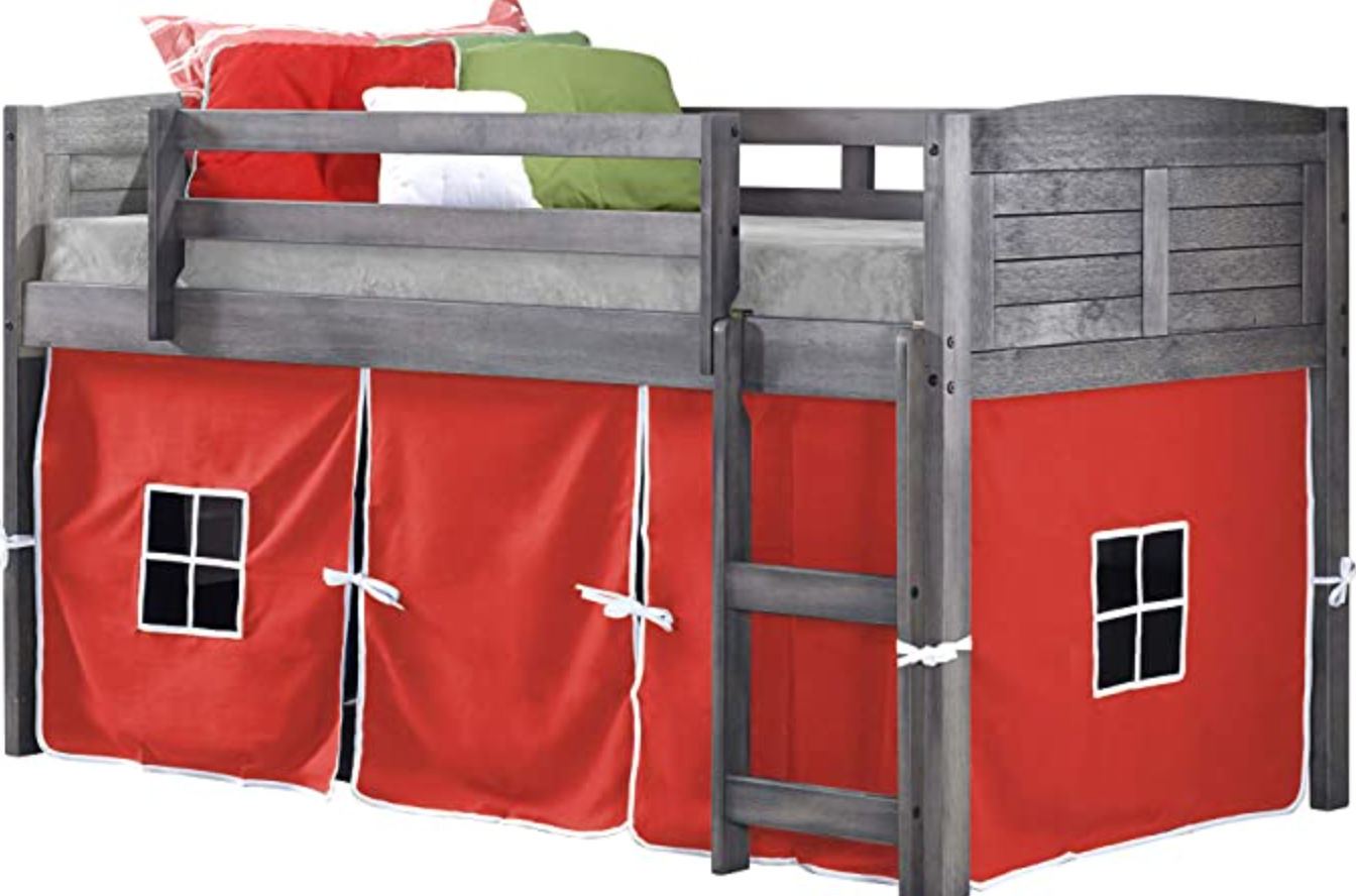 KIDS Louver Low Loft Bed with Camo Tent, Twin, Antique Grey
