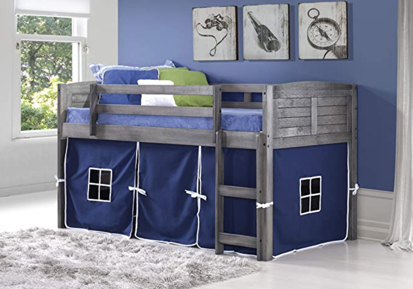 KIDS Louver Loft Bed, Twin, Antique Grey