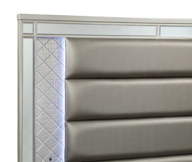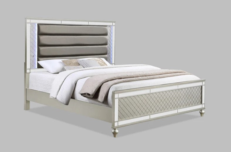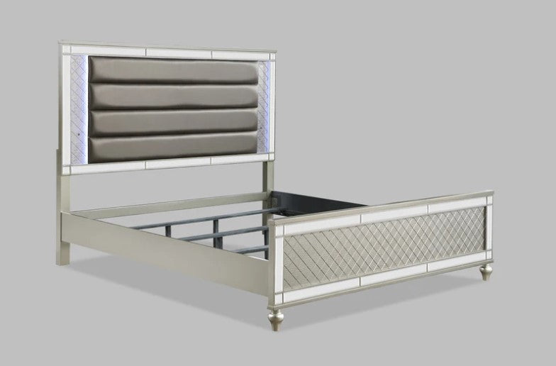 Cristian Champagne LED Upholstered Panel Bedroom Set