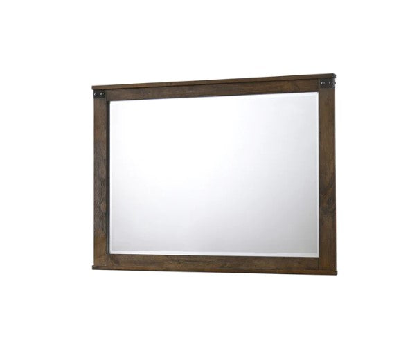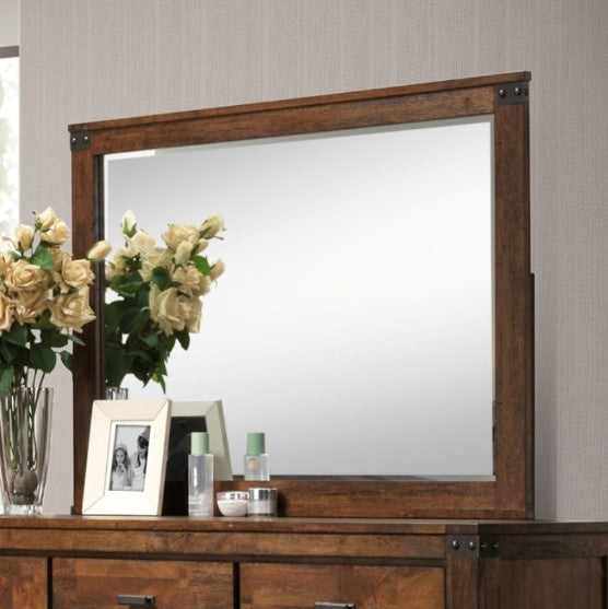 This Curtis Dresser Mirror by Crown Mark is perfect to give your bedroom an antique and rustic look. Crafted out of Solid Hardwood and Veneers, it features a brown finish and a simple wood frame that has a distressed finish. The sleek elements of design combined with its durable construction makes it a very sophisticated addition to any room.