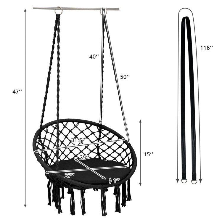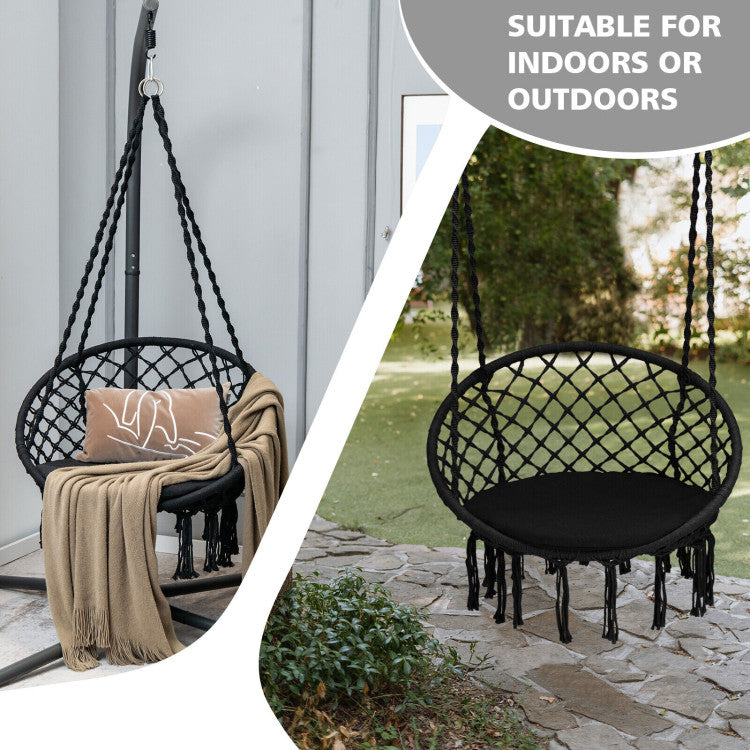 ● Soft Padded Cushion: Different from common hammock chairs, this macrame swing features a seat cushion that is covered with breathable fabric and filled with soft cotton to bring a comfortable sitting experience. Moreover, the cushion is removable based on your preference.