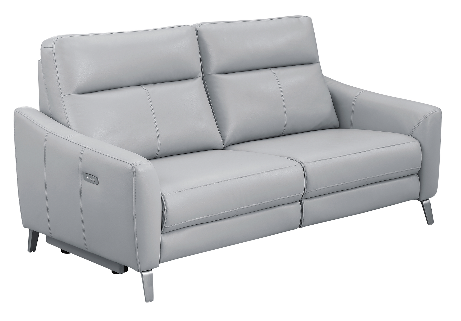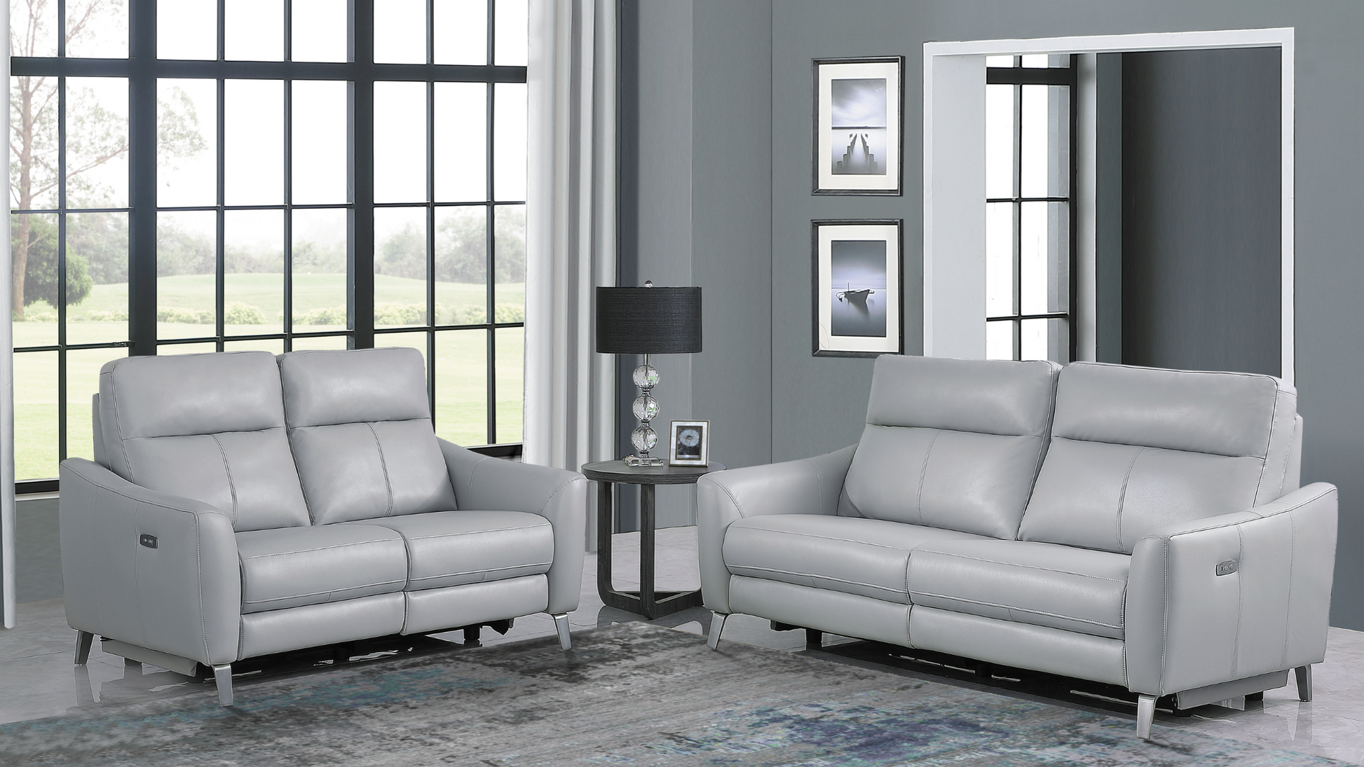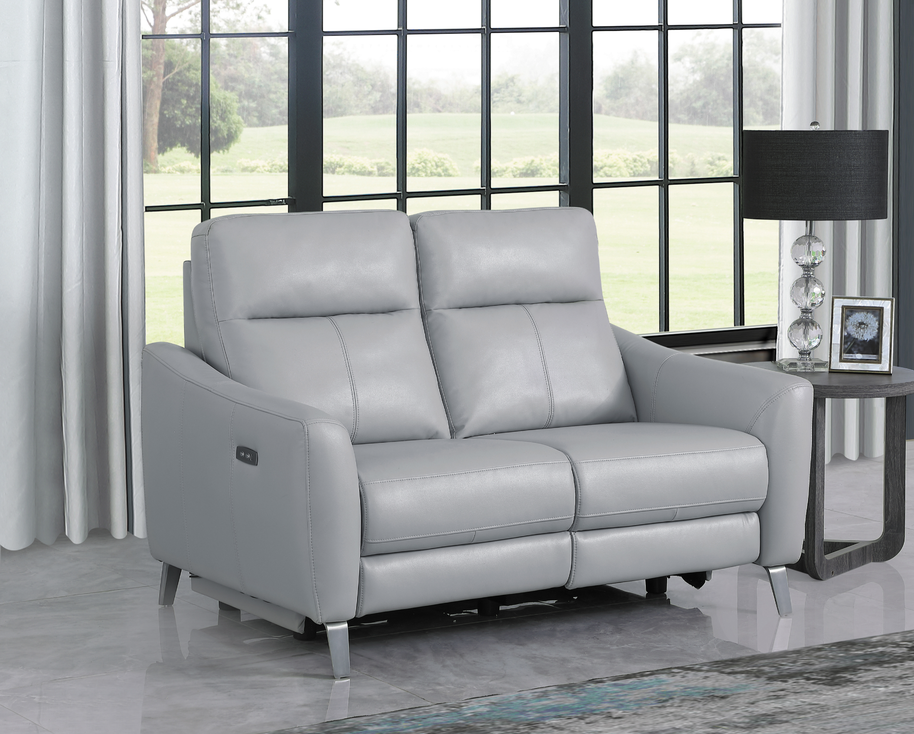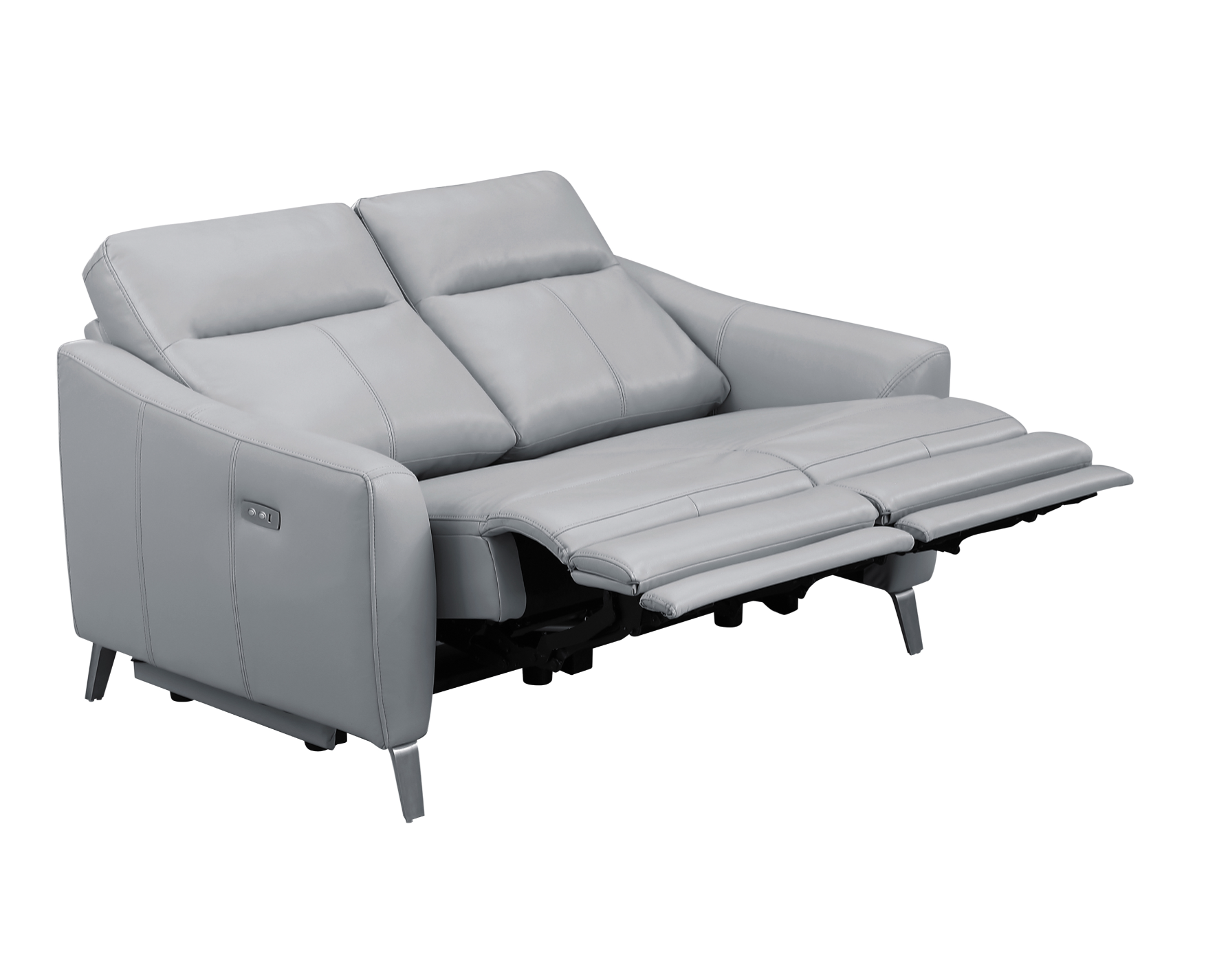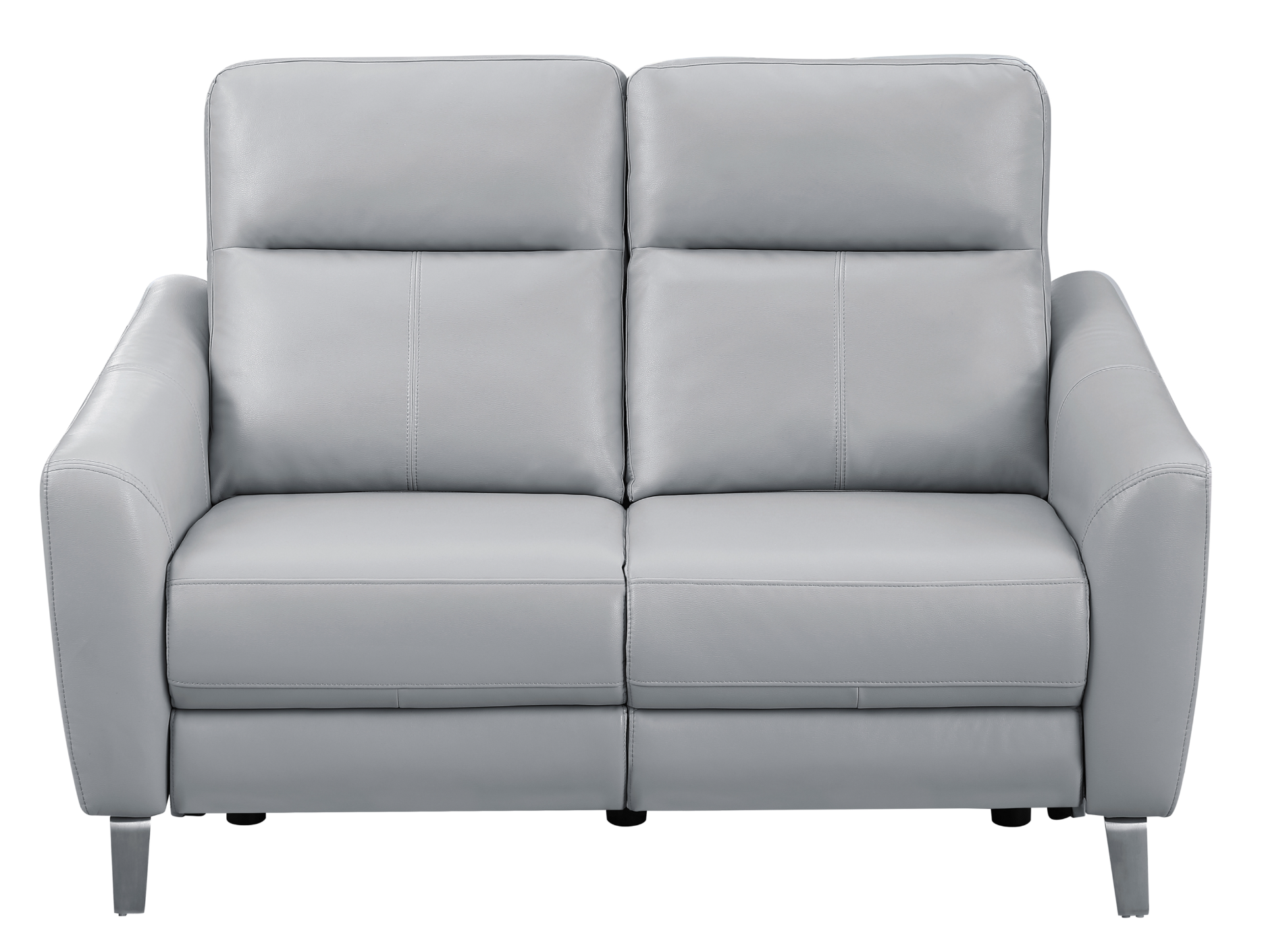 Assume the position in a modern space with this elegant power reclining loveseat, wrapped in chic dark blue leatherette upholstery. Smaller spaces are perfect for this compact loveseat, embellished with extra-long footrests to accommodate extra-long bodies. Take advantage of pleasing temperature control with cool gel memory foam over solid construction materials, and charge electronic devices with a handy built-in USB port. The recliner includes a wall hugger mechanism, saving precious floor space in your family room. With power recline functionality, this loveseat is simple and easy for the whole family to operate.Includes: