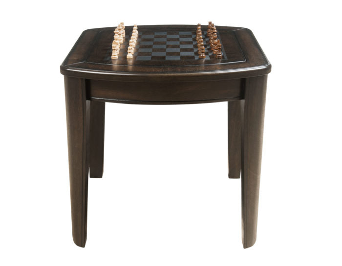 - Game end table has reversible chessboard top for use as chessboard or regular end table – chess pieces sold separately
