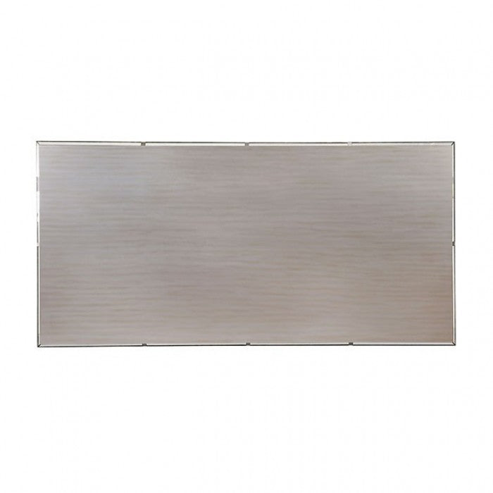 A glamorous design that will amaze guests of all ages, this dining collection is a superb addition to any formal dining room. The antique mirror inserts along the table top, lengthy bench and paired server adds a beautiful and elegant touch to the already charming silver finish. Padded flannelette chairs add comfort to the chic design with their tufted backs and soft coloring.