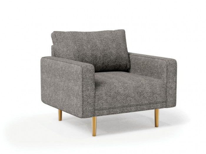 Clean lines and a boxy silhouette make this modern sofa set the true focus of your room. It also cleverly masks the most stylish part of this piece--the frame and back pillow is upholstered in exclusive chic boucle with metallic undertones, a trendy choice of fabric that will bring contemporary charm to any sophisticated urban space.