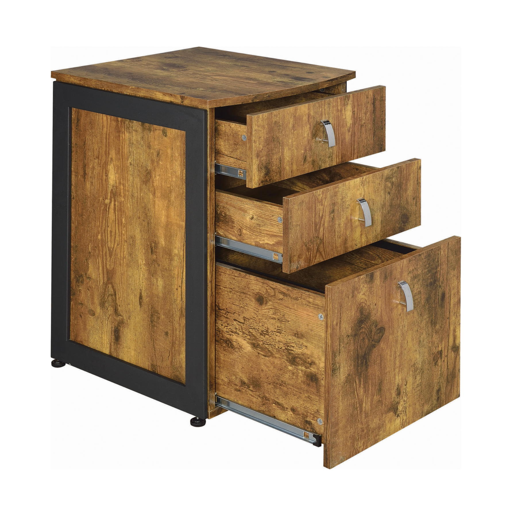 Estrella 3-Drawer File Cabinet Antique Nutmeg And Gunmetal