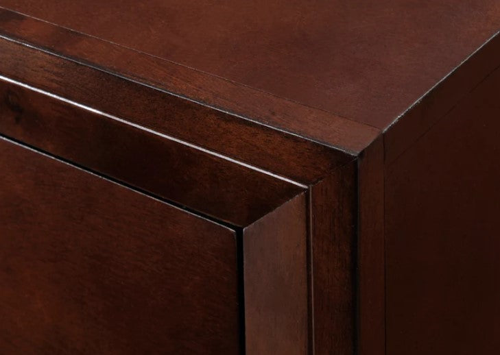 Create the bedroom of your dreams with our Evan Bedroom Collection. With a contemporary style that fits various decors, this bedroom furniture is sure to please. The brown color is perfect for creating a warm and inviting space. Plus, the 2-toned drawer interiors with strong English dovetail construction provide both function and style. You'll love the extra touches like the sanded drawer bottoms that protect clothing and other items. The Kenlin metal center drawer glides will not buckle with humidity changes, and the dustproof bottoms seal your case and give added strength. With the slat roll foundation, no box spring is needed. Transform your bedroom into a haven with our Evan Bedroom Collection.