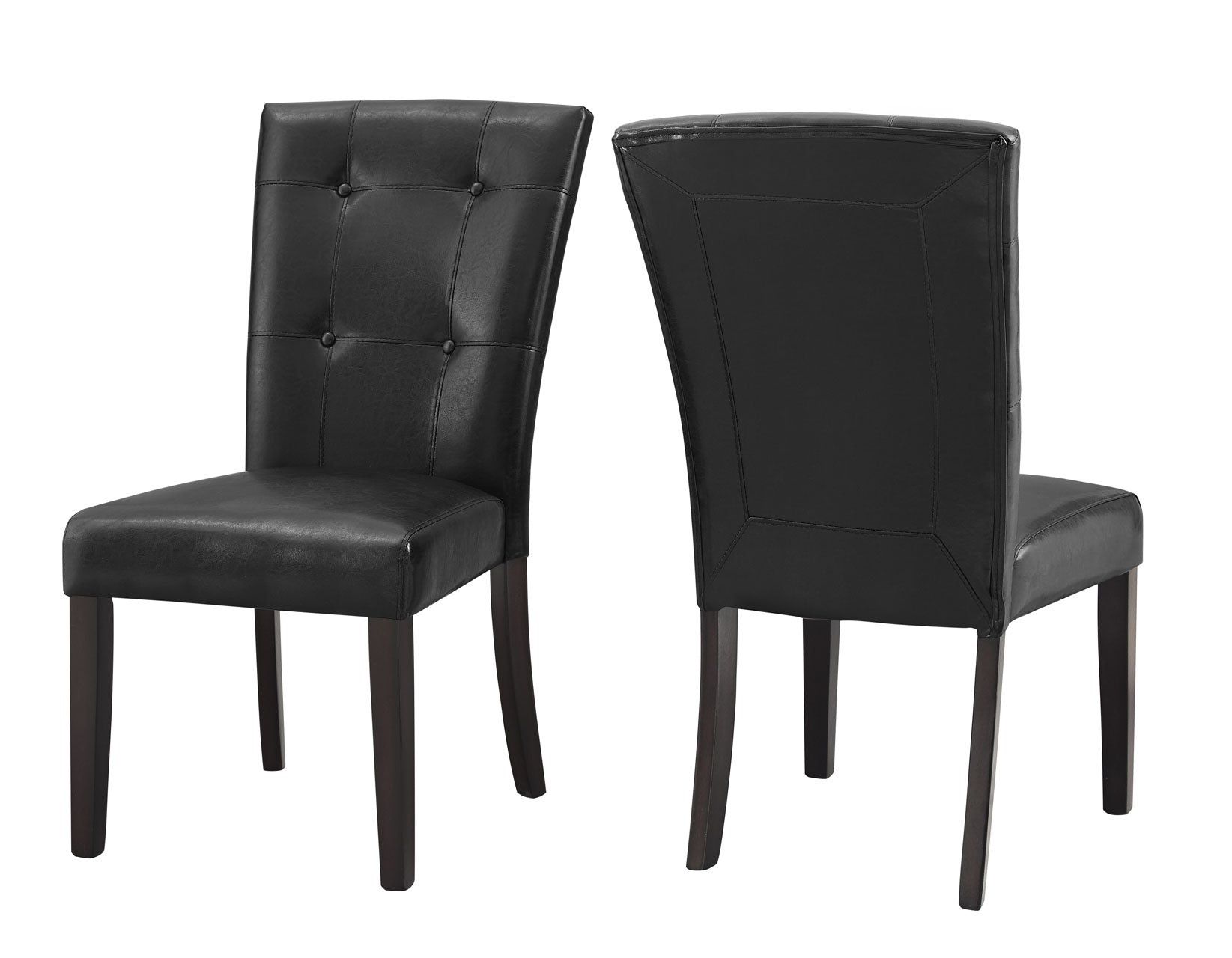 - Memory foam chairs have tufted backs in easy-to-clean black polyurethane