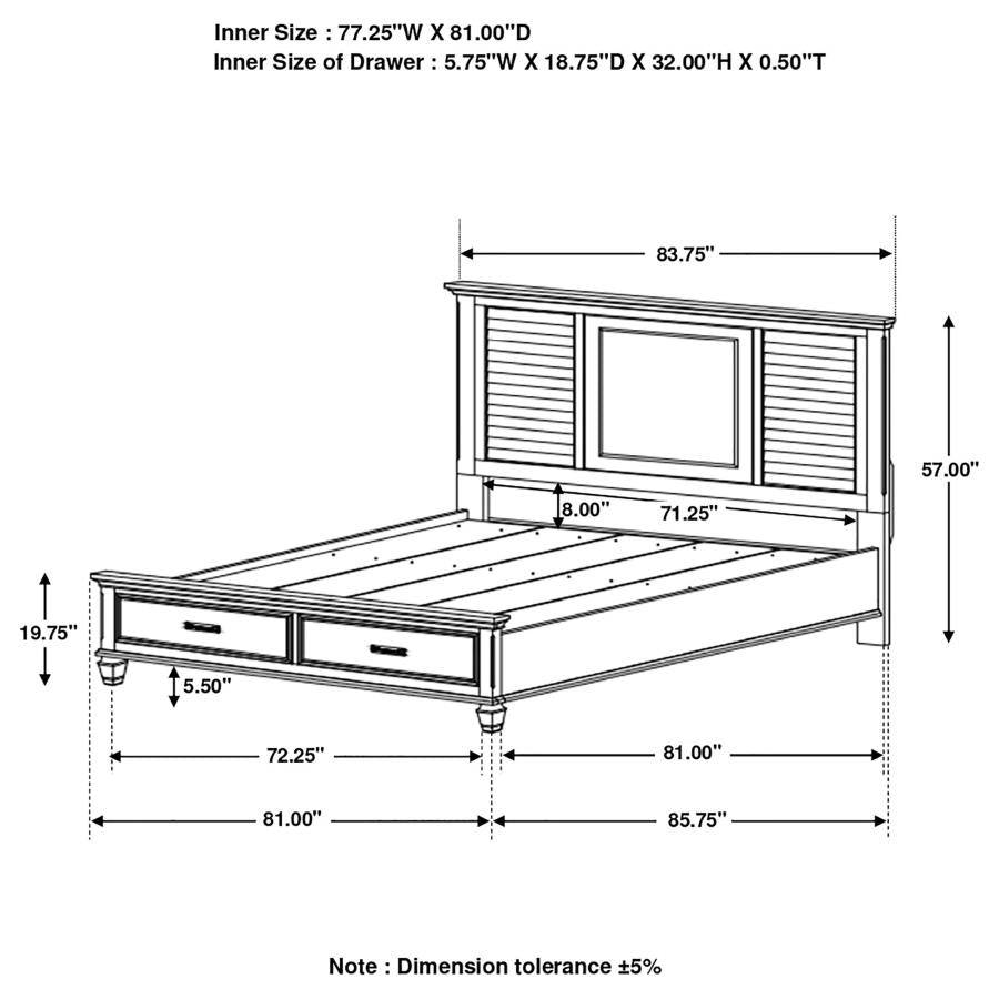With a casual, rustic vibe perfect for a beachside cottage, this platform bed features a shutter style paneled headboard that lends a tropical design. The bed frame also boasts a subtle wire-brushed finish with molding accents. The footboard offers two spacious drawers, each with soft-closing drawer glides and dark finished hardware. In addition, this lovely bed frame is slightly raised on square carved, tapered feet. Available in two finishes, this bed is sure to fit in your bedroom's existing color palette.