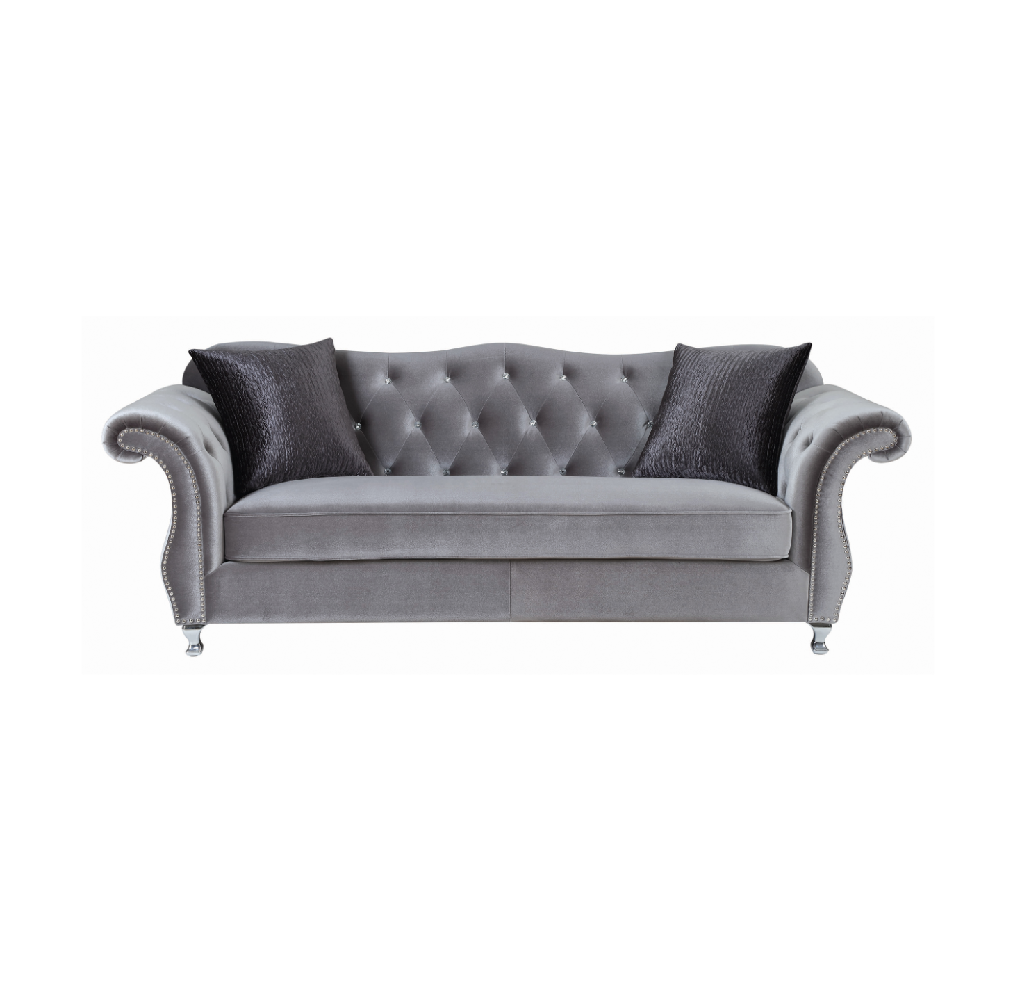 Frostine Button Tufted Sofa Silver