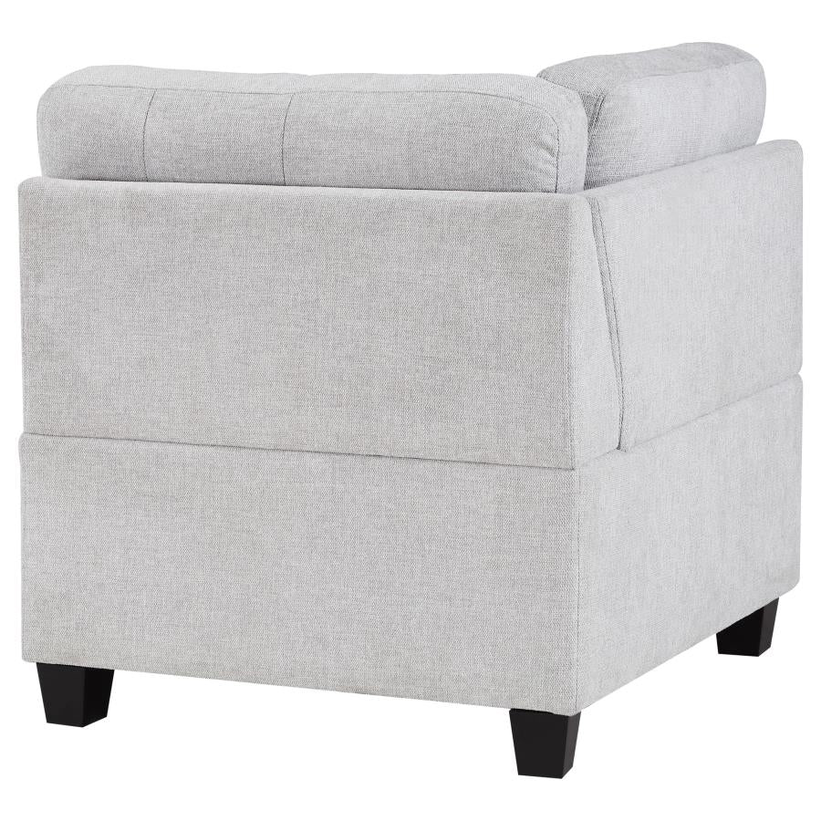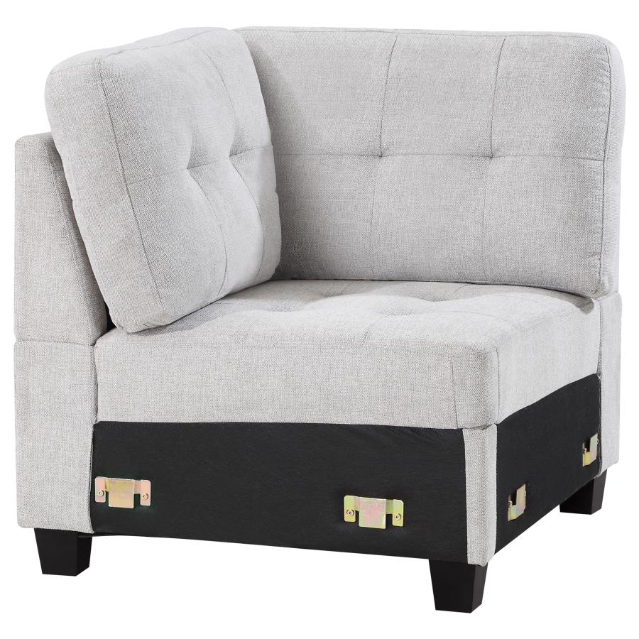 - Corner seat includes one seat and two back cushions to anchor a modular sectional sofa design