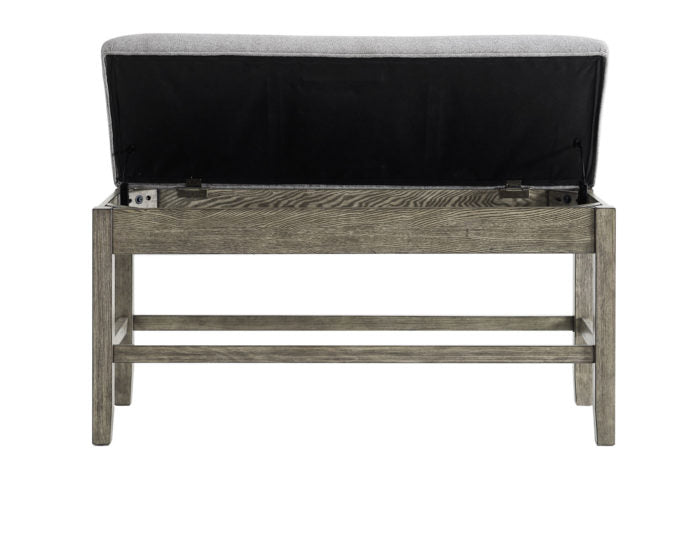 Introduce a touch of rustic charm and practical storage to your home with the Grayson Counter Bench. The 24″ seat height fits comfortably with 36″ height counters offering a beautiful accent to any gathering. A hand crafted smoky honey finish and nailhead trim combine with 100% polyester gray fabric cover to create a look of understated elegance that complements any decor style. Concealed lift-top storage ensures your belongings are always hidden but close by.. Comfortable seating, great style and convenient storage all in one stylish package.