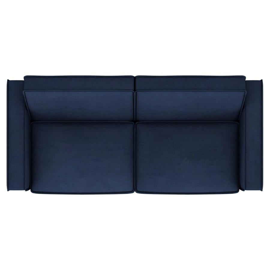 Sink into the plush comfort of a modern sleeper sofa while enjoying a movie or catching up with the family. The sofa easily converts to a bed when guests arrive, offering versatility perfect for a compact living room or multifunctional home office. It shows off navy blue fabric upholstery that's rich and soft, creating an inviting pop of color to anchor surrounding decor. Wide track arms define is simple, streamlined silhouette, with trim details that add a hint of texture. It's a great choice in your den, easily allowing the space to become an occasional guest room