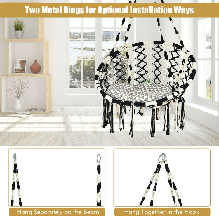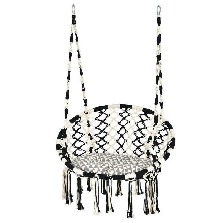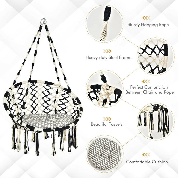 Hanging Hammock Chair with Cushion Macrame Swing Cotton Rope Indoor Outdoor
