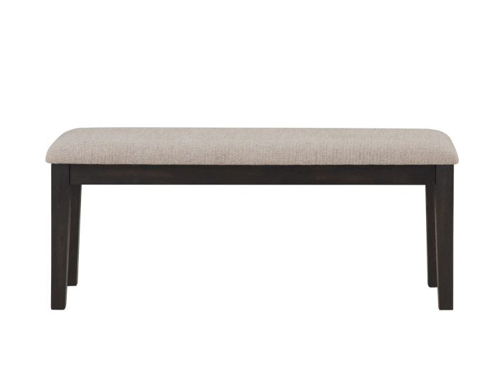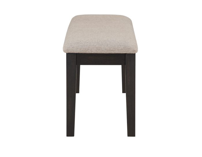 This clean-lined upholstered bench features all the style and construction features needed for a dining, hallway or bedroom addition. A neutral black finish and oatmeal fabric is neutral without being bland. Seats two adults or multiple kids, the Harington bench is an easy way to add generous seating to any room.