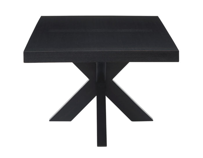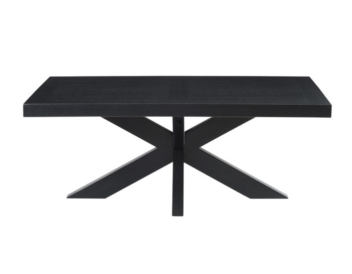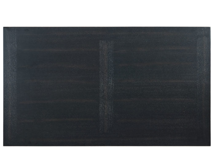 - Styling details include timber-beam pedestal base, plank-effect top with breadbasket veneer pattern and edge finish rub-through that gives tables the feeling of a vintage heirloom antique.