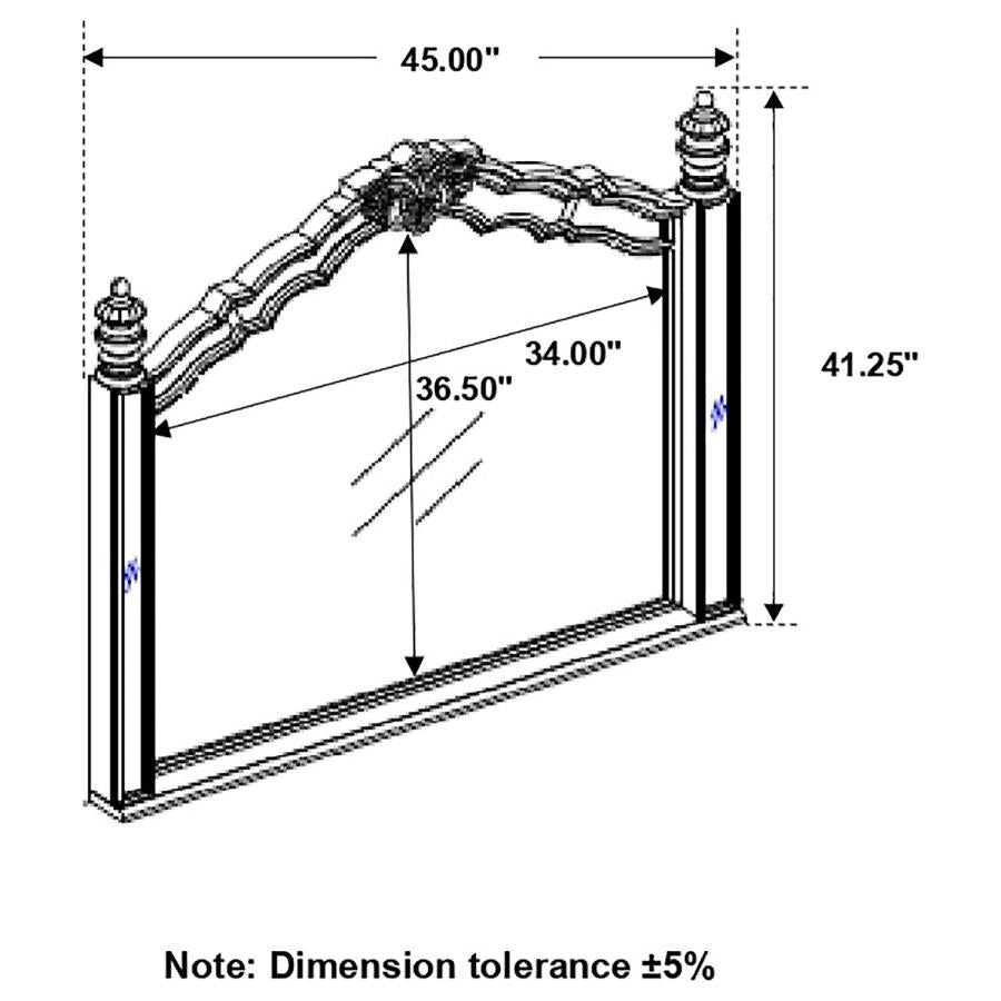 Embrace your glamorous side with this luxe mirror from the Heidi collection. This mirror presents an iconic bombe shape, perfectly mimicking the bed frame from this same collection. The metallic platinum finish boasts of Hollywood glam, accented with mirrored panels within the ornate frame. Wood carved details adorn the frame for a traditional silhouette. Perfectly complements the dresser from this collection, easily attaching for the finishing touch.