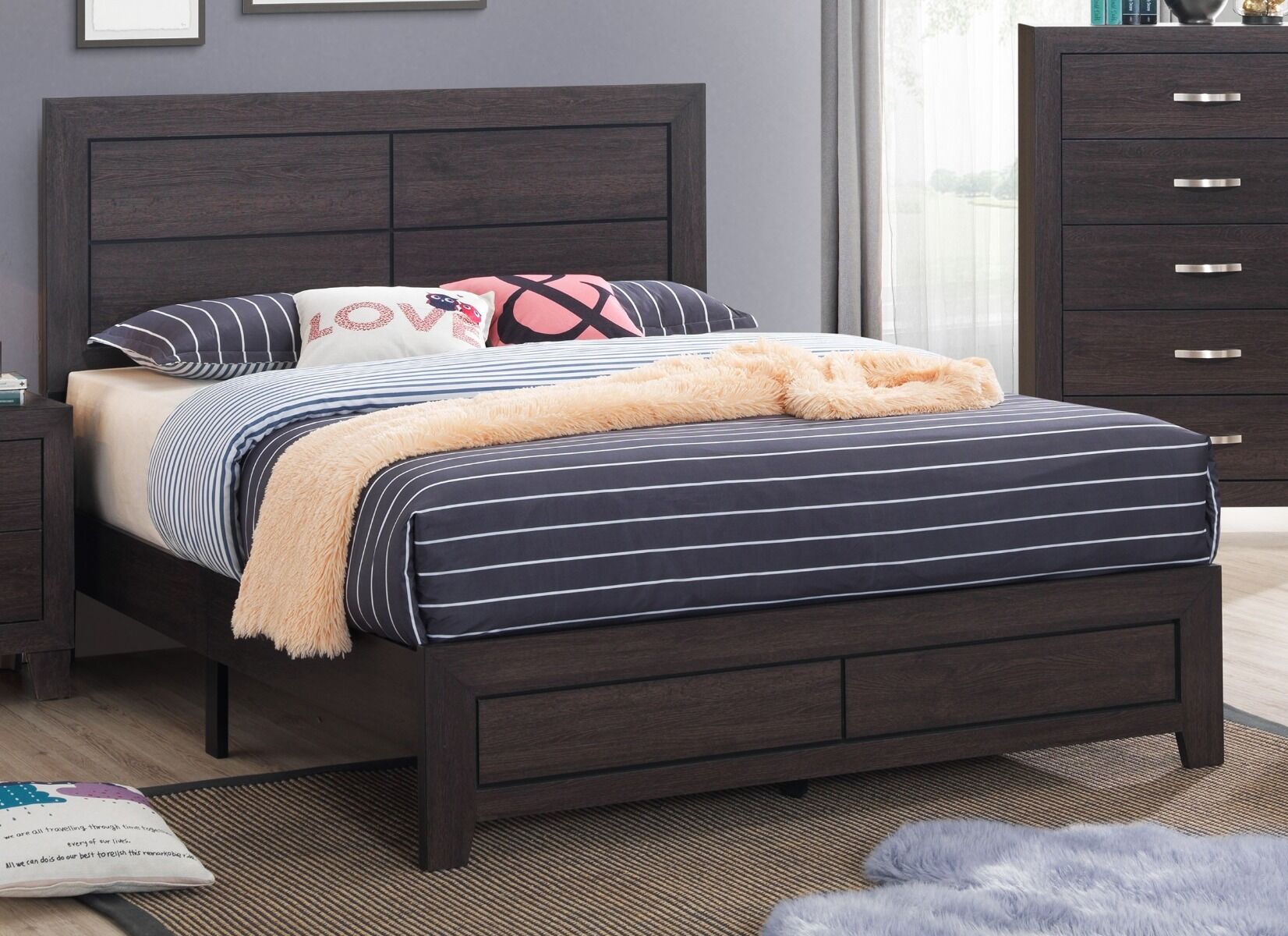 Make a statement in your bedroom with this stylish queen bed. The Hopkins Queen Platform Bed is a bold, contemporary piece that will make a statement in any bedroom. With sleek lines and a rich brown finish, this bed is perfect for anyone who wants a modern look in their home. This bed is also strong and sturdy, making it perfect for everyday use. Add it to your list of must-haves for your next home update.