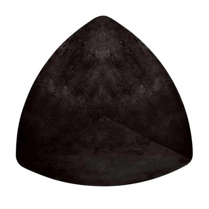 Featuring a distinctive triangular shaped table top with a black coating finish, this table set is perfect for any dining setting. Now, guests and family can enjoy a meal or have a conversation while seated around this modern style dining set.