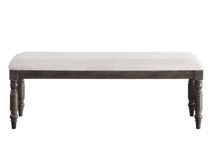 Classic design in a bench for dining or hallway areas. Part of the Hutchins dining collection, this bench features a comfortable upholstered seat and is ideal for seating multiple people for dining in a mudroom or a hallway.