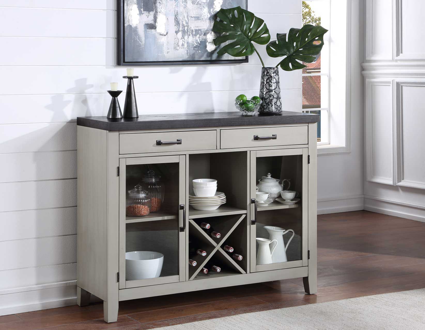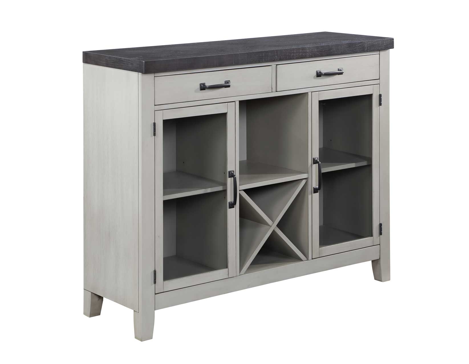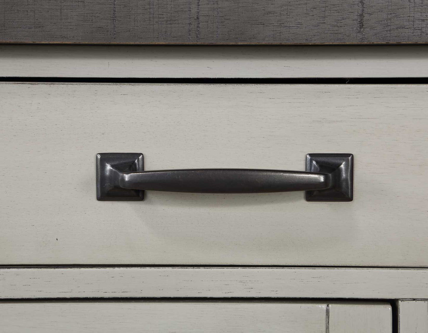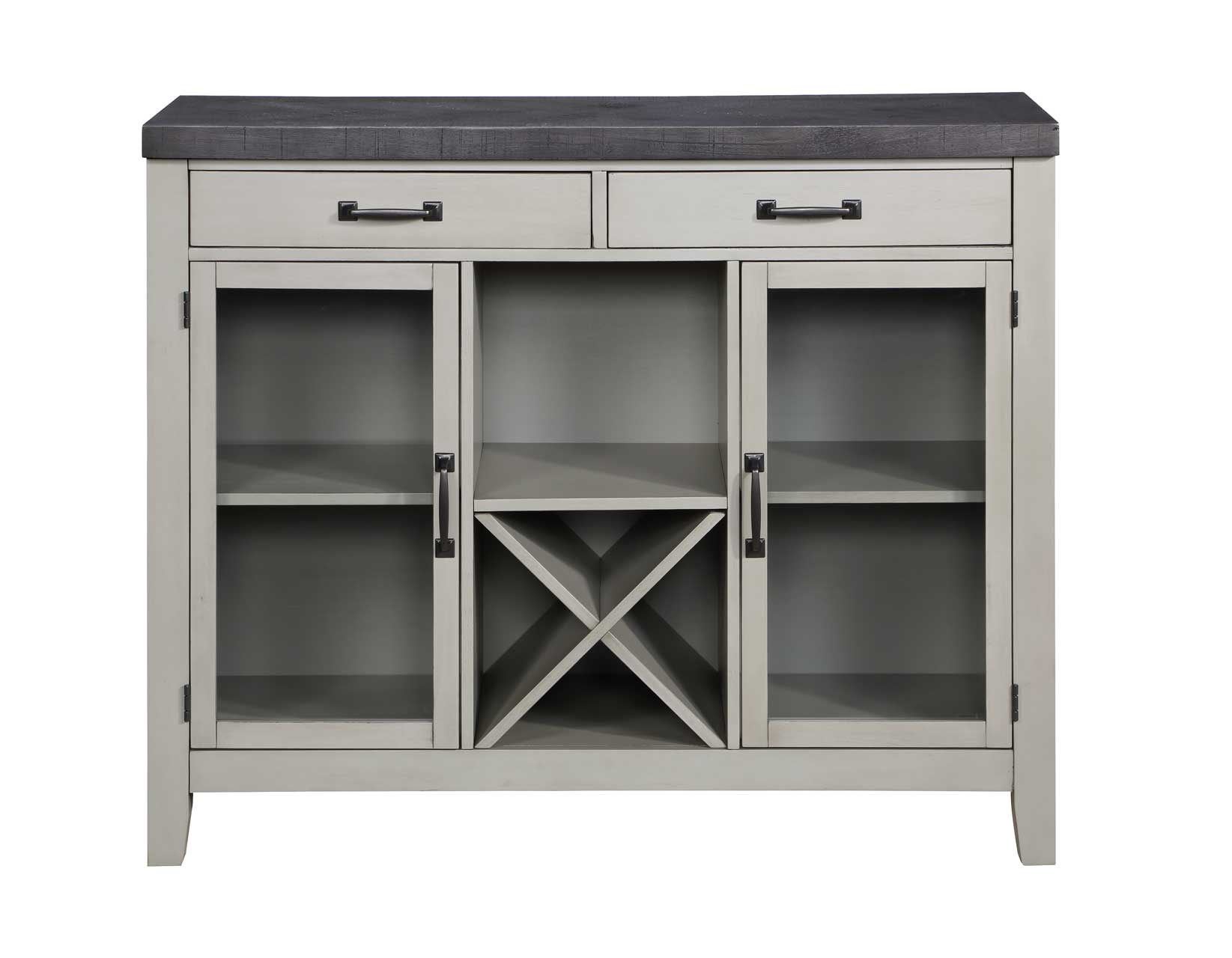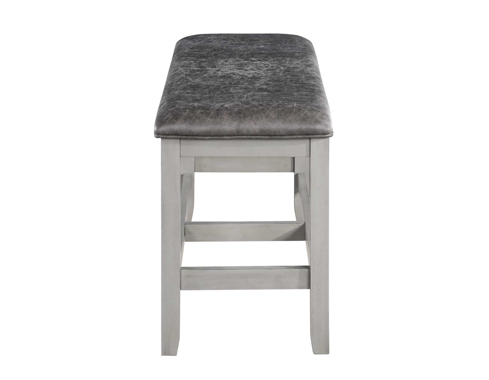 Relaxed, transitional styling in a neutral two-tone gray finish are the hallmarks of the comfortable Hyland Counter Dining Set. A Storage Counter Table anchors any dining area ably with a 20-inch insertable leaf to expand to 80-inches for seating of up to eight. The Stone Gray and Charcoal finish marries up with the oil-rubbed nickel hardware and vegan rawhide upholstered chair to create a fresh yet approachable dining set you will treasure for years.