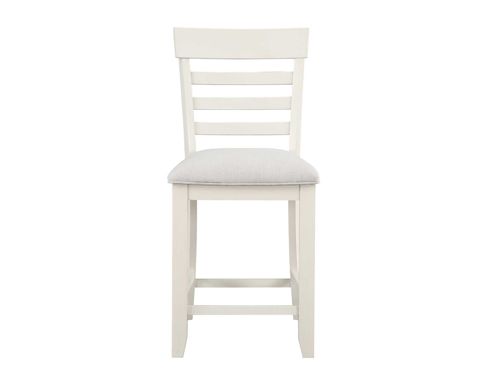 Relaxed, transitional styling in a neutral two-tone milk and honey finish are the hallmarks of the comfortable Hyland Counter Dining Set. A Storage Counter Table anchors any dining area ably with a 20-inch insertable leaf to expand to 80-inches for seating of up to eight. The Milk and Honey finish marries up with the oil-rubbed nickel hardware and vegan rawhide upholstered chair to create a fresh yet approachable dining set you will treasure for years.