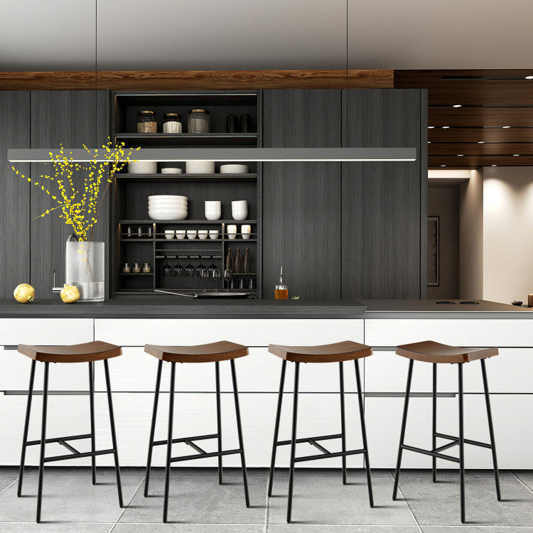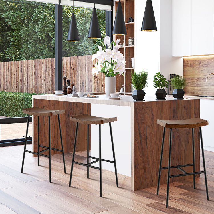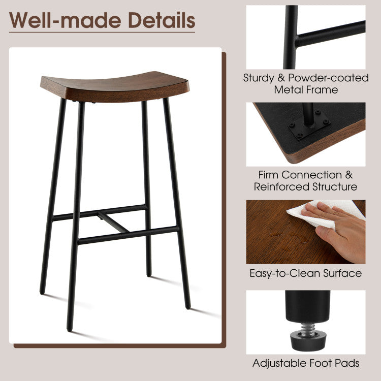 ● Add Elegant Charm to Your Home: This backless bar stool features a unique saddle seat, which not only offers greater comfort, but also adds a touch of elegance. The black metal legs with rustic brown wood grain seat surface make the bar stool look chic and fit well with any home decoration styles.