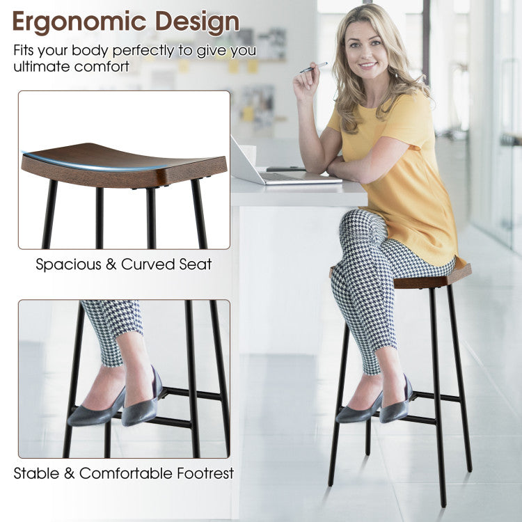 ● Ergonomic Design and Durable Material: This bar stool is equipped with a spacious and curved saddle-styled seat, which fits your body perfectly to give you ultimate comfort and reduce fatigue. Made of 1.5" thick MDF, the saddle seat is not easy to deform for long-lasting use. Moreover, the 11" high footrest provides a comfy place to rest your feet.